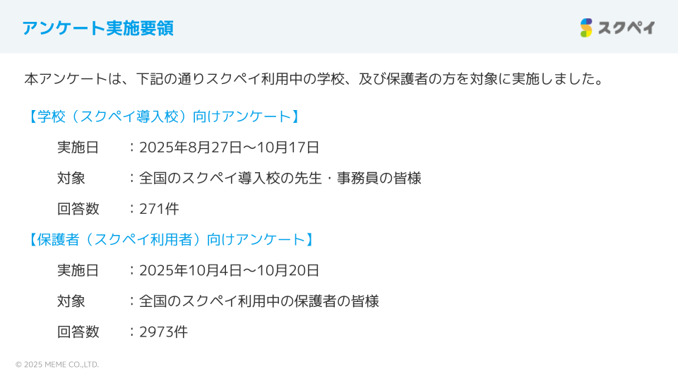 2025年夏~秋にかけて、学校の皆様、保護者の皆様にスクペイの利用状況に関するアンケートを実施しました。